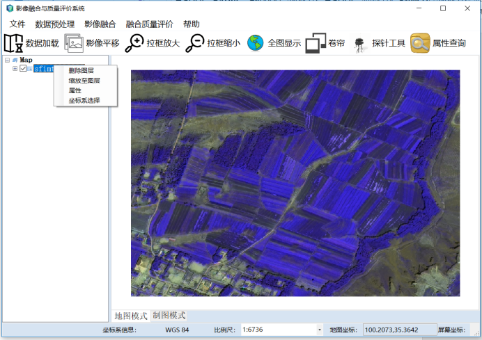近年來,隨著圖像處理技術(shù)的蓬勃發(fā)展圖像融合技術(shù)也日趨成熟,對融合圖像的融合質(zhì)量評價越來越重要,尤其對多源遙感影像融合質(zhì)量的性能評估,是一項具有重要意義的工作。融合影像性能質(zhì)量的優(yōu)劣直接影響工作人員對下一步融合圖像的解譯及研究人員對融合算法的改進(jìn)都有著非常重要的作用。所以,對遙感影像進(jìn)行定性、定量的性能評價分析尤為重要.,軟件實現(xiàn)了對遙感影像的基礎(chǔ)操作、遙感影像的預(yù)處理、影像的融合、及實現(xiàn)融合后影像質(zhì)量評價參數(shù)的運算展示。 第一,影像數(shù)據(jù)的加載、平移、屬性查看等基礎(chǔ)功能的實現(xiàn); 第二,對影像數(shù)據(jù)的預(yù)處理模塊;對遙感影像的大氣校正、輻射定標(biāo)、正射校正,如果是異源影像還需要進(jìn)行影像匹配; 第三,對預(yù)處理后的影像進(jìn)行融合,目前主要選取來四種融合方法,后期還會對不同的融合方法添加的系統(tǒng)中來。 第四,對融合后的影像進(jìn)行參數(shù)的統(tǒng)計分析,主要通過融合影像的統(tǒng)計直方圖,以及選取不同的融合后影像的融合質(zhì)量評價參數(shù)進(jìn)行計算統(tǒng)計。 |