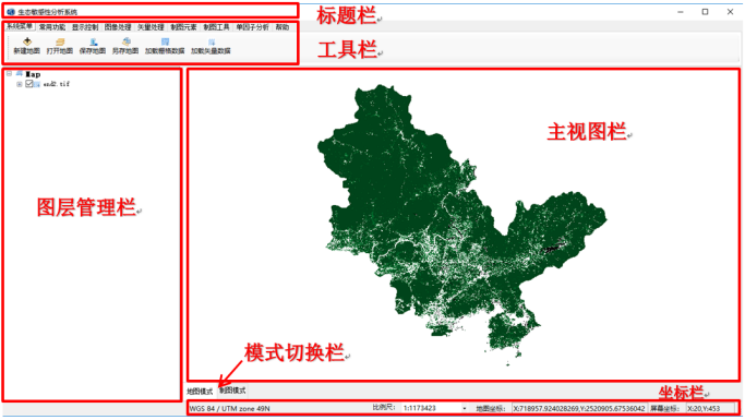生態(tài)環(huán)境敏感性是指生態(tài)系統(tǒng)對(duì)區(qū)域內(nèi)自然和人類(lèi)活動(dòng)干擾的敏感程度, 即區(qū)域內(nèi)的不同的生態(tài)因子對(duì)外界壓力大小的反應(yīng)程度。它能夠反應(yīng)區(qū)域內(nèi)的發(fā)生生態(tài)失衡和環(huán)境問(wèn)題的可能性,是個(gè)重要的生態(tài)概念。對(duì)區(qū)域的生態(tài)環(huán)境敏感性進(jìn)行分析,不僅僅可以合理評(píng)價(jià)人類(lèi)活動(dòng)對(duì)自然的影響程度,促進(jìn)人與自然環(huán)境和諧相處,共生共榮,還可以通過(guò)制定科學(xué)合理的生態(tài)環(huán)境規(guī)劃和保護(hù)政策,在開(kāi)發(fā)中保護(hù),在保護(hù)中開(kāi)發(fā)。