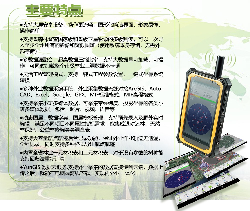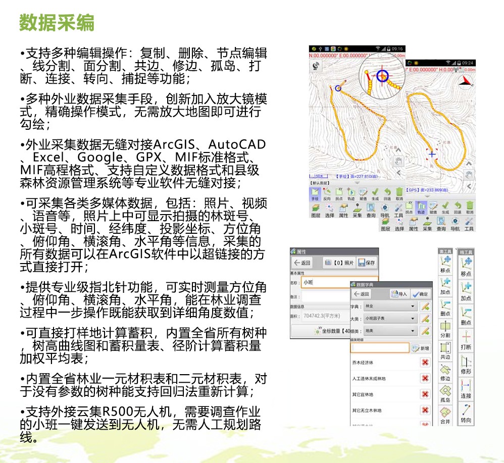 ?外業(yè)采集數(shù)據(jù)無縫對接ArcGIS、AutoCAD、Excel、Google、GPX、MIF標(biāo)準(zhǔn)格式、MIF高程格式、支持自定義數(shù)據(jù)格式和縣級森林資源管理系統(tǒng)等專業(yè)軟件無縫對接;