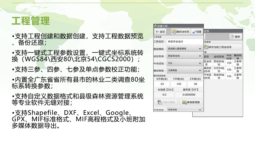 ?支持一鍵式工程參數(shù)設(shè)置,一鍵式坐標(biāo)系統(tǒng)轉(zhuǎn)換(WGS84\西安80\北京54\CGCS2000);