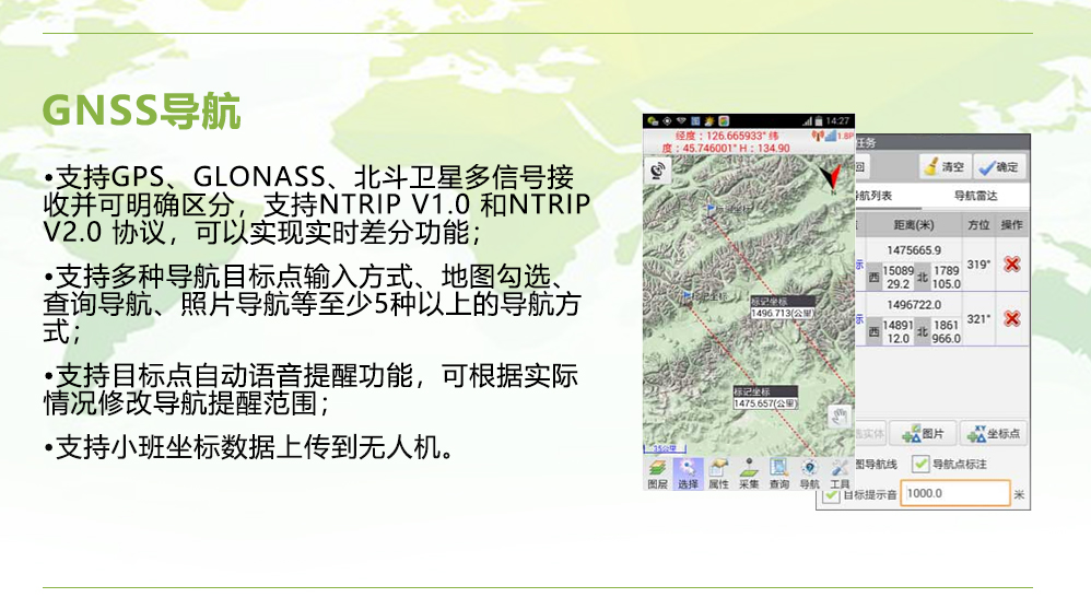 ?系統(tǒng)擴展實現(xiàn)與外接設(shè)備藍牙和WIFI同時連接,如鏈接外置GPS模塊、專業(yè)RTK等,實現(xiàn)不同的測量方式;